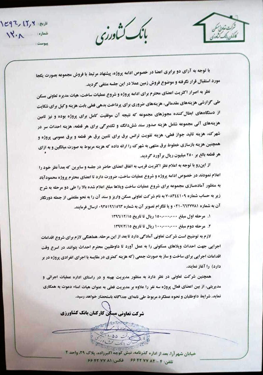 اطلاعیه های پروژه محمودآباد(علمده غربی)