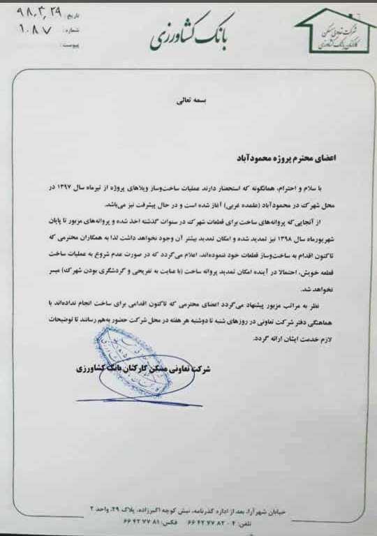 اطلاعیه ساخت و ساز ویلا 1398/03/29